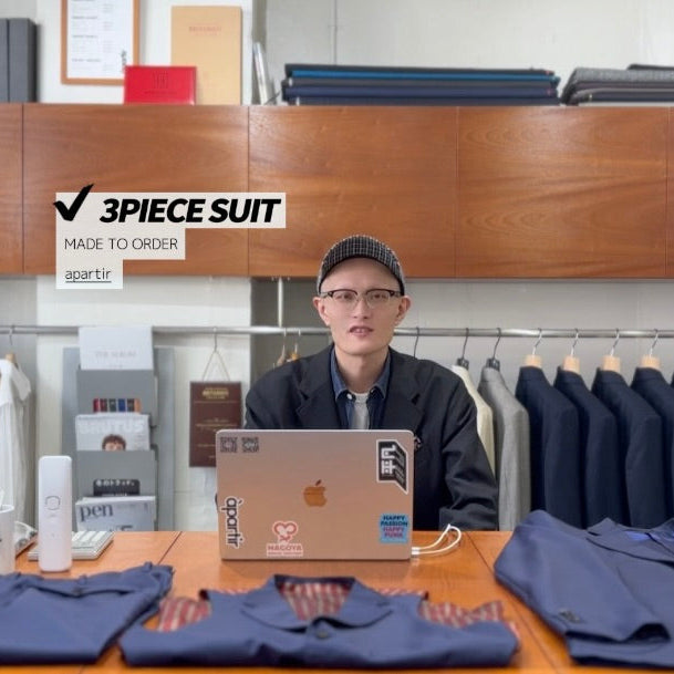 àpartirで展開するオーダーウェア。 仕事着として、普段着として、あなただけの一着を仕立てませんか。 こちらのサイトで対象のサービスをご予約後、店舗にて採寸を行い、デザインや生地をお選びいただき誂えさせて頂きます。