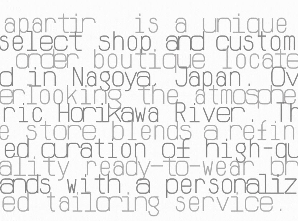 Apartir is a select shop located along the exotic Horikawa River. Its name comes from the French word for future. It offers select brands and personalized orders.