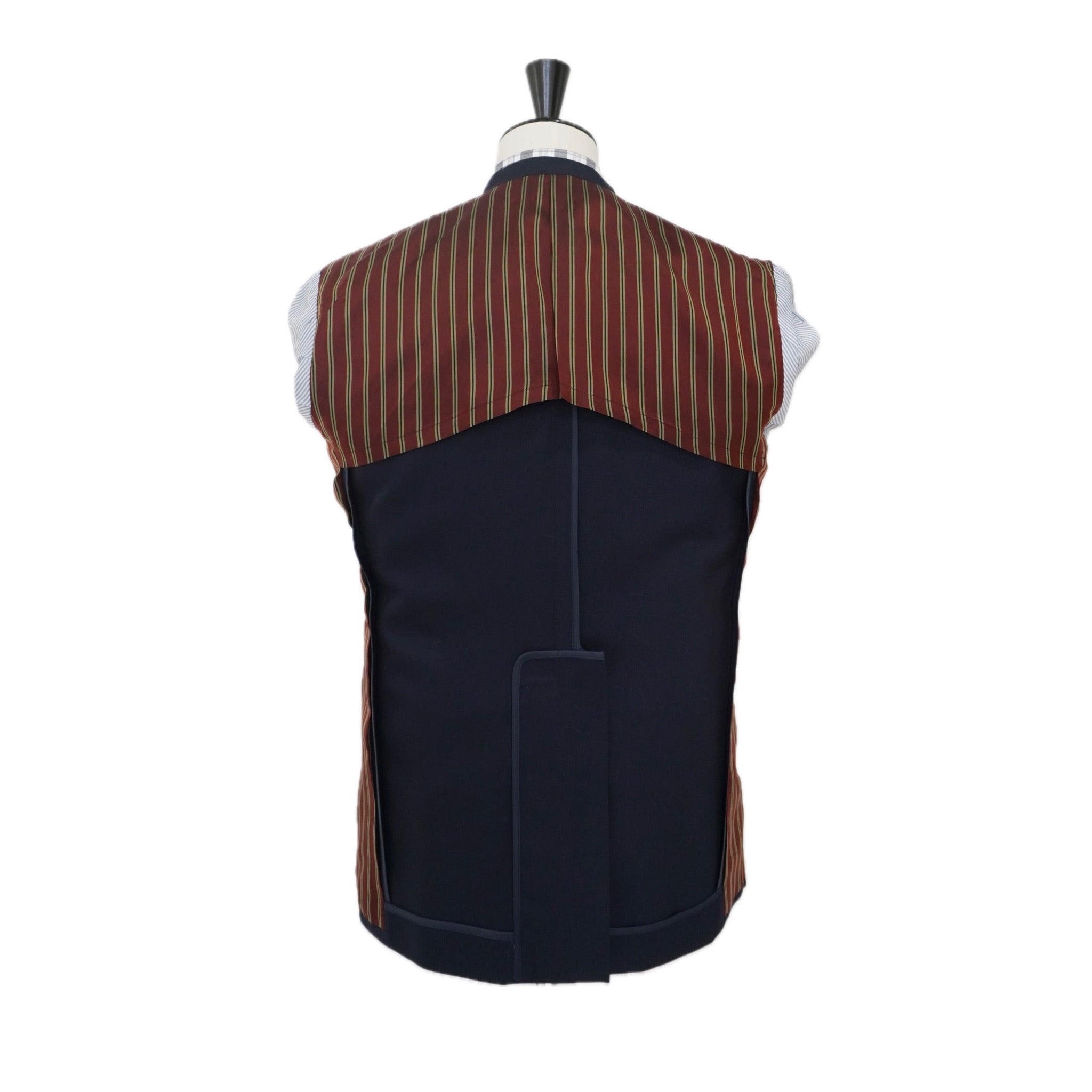 肩パッドと毛芯による構築的な胸周り。
