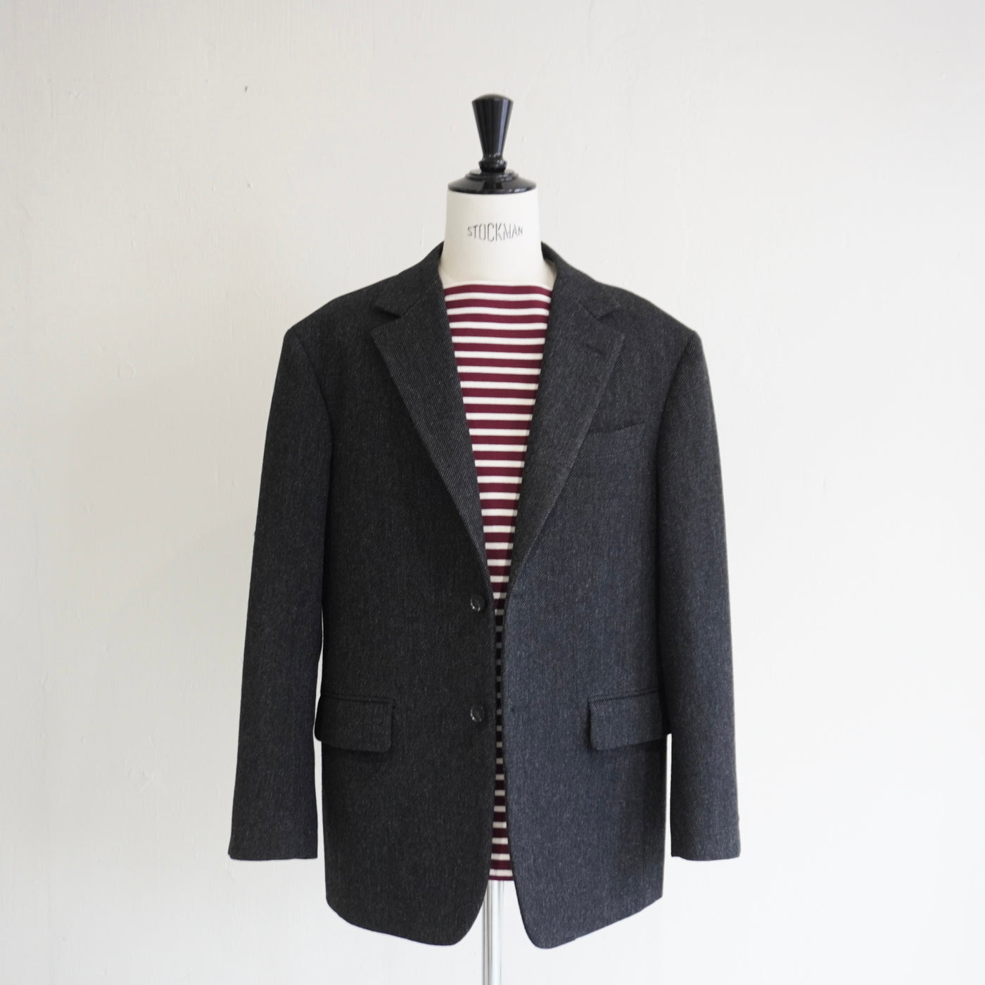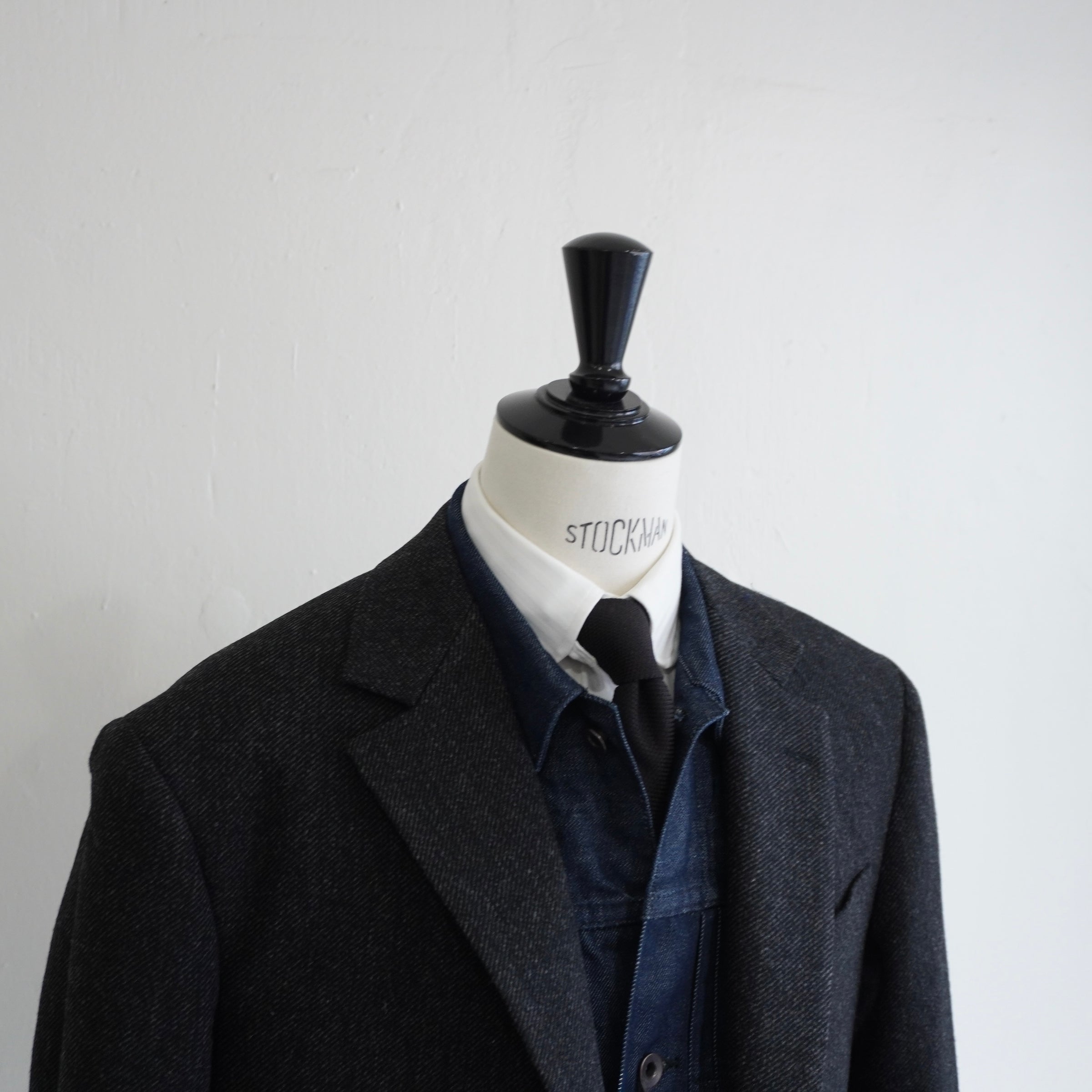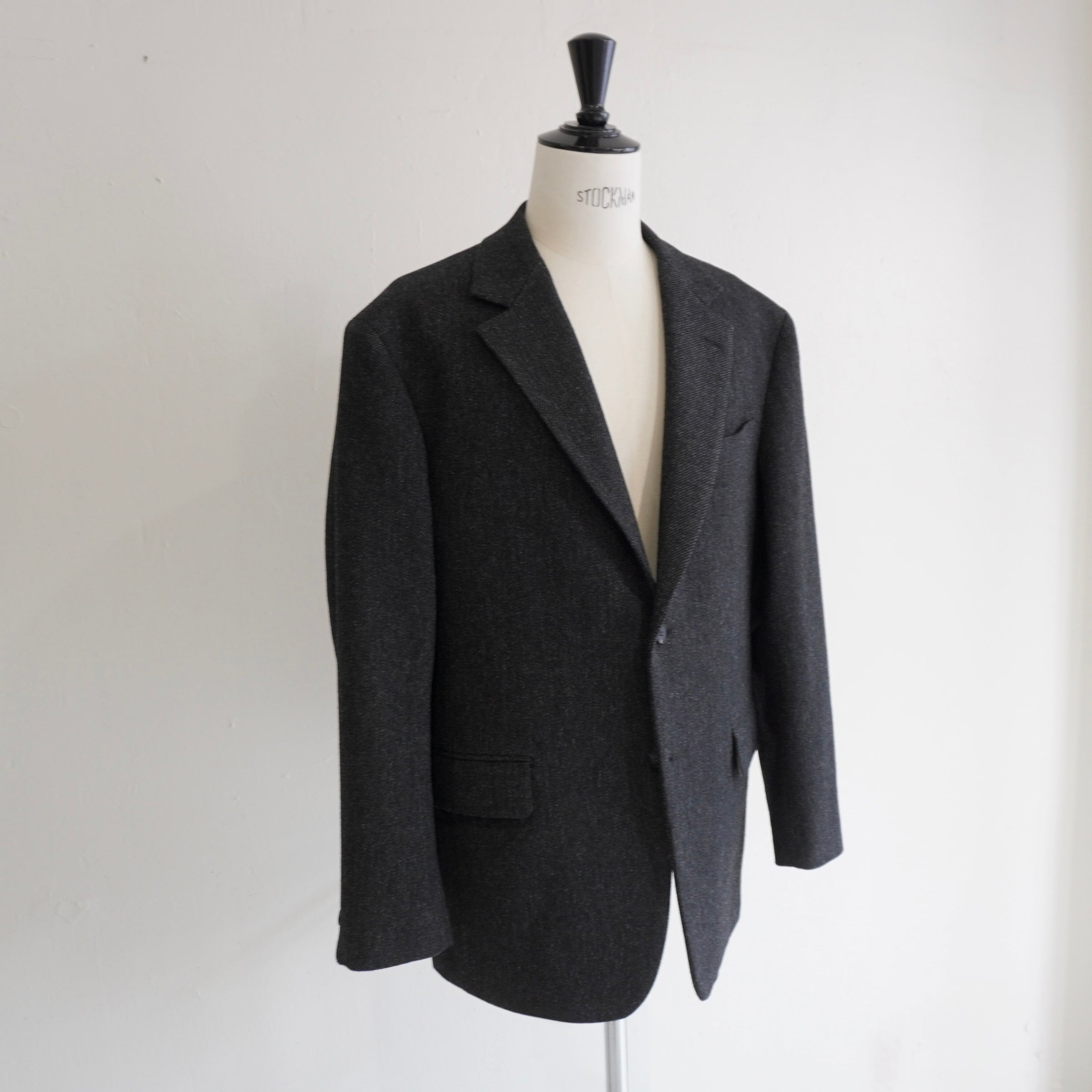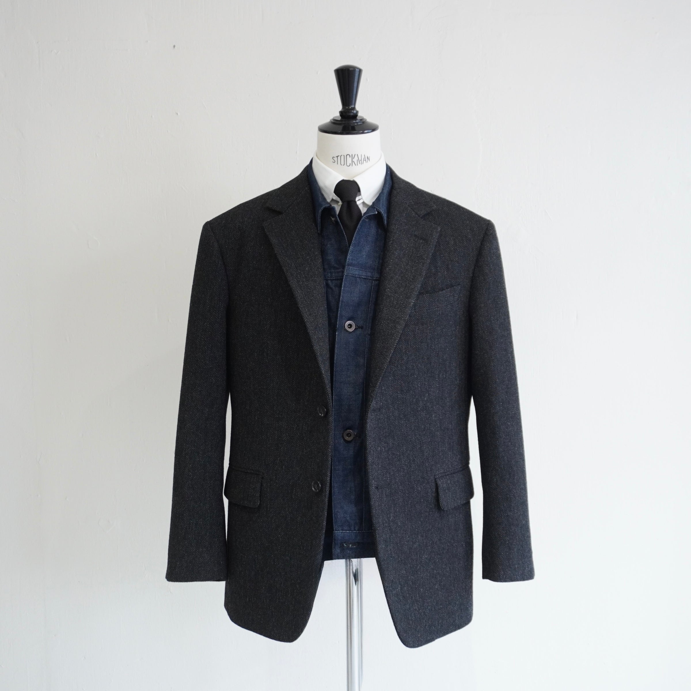 ドロップショルダーが生む抜け感と、英国生地のハリがつくる構築。