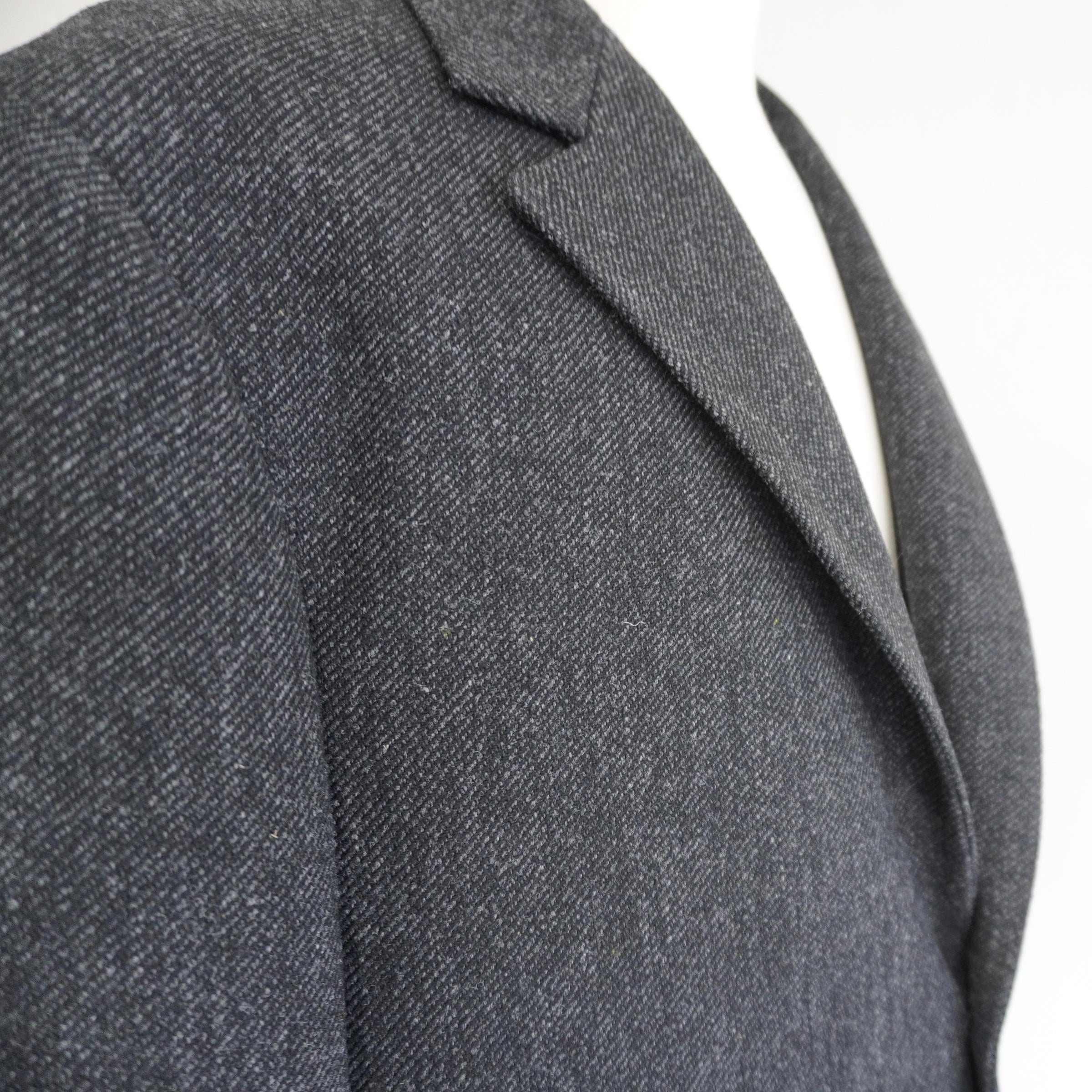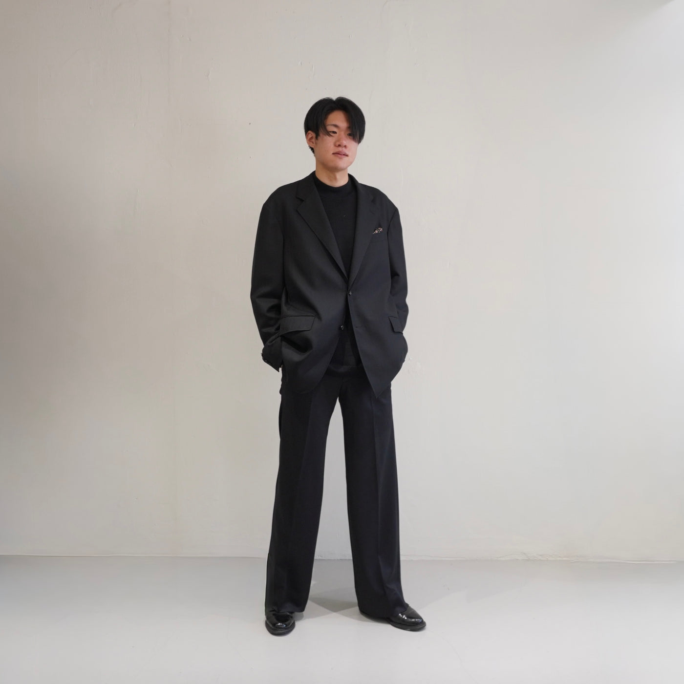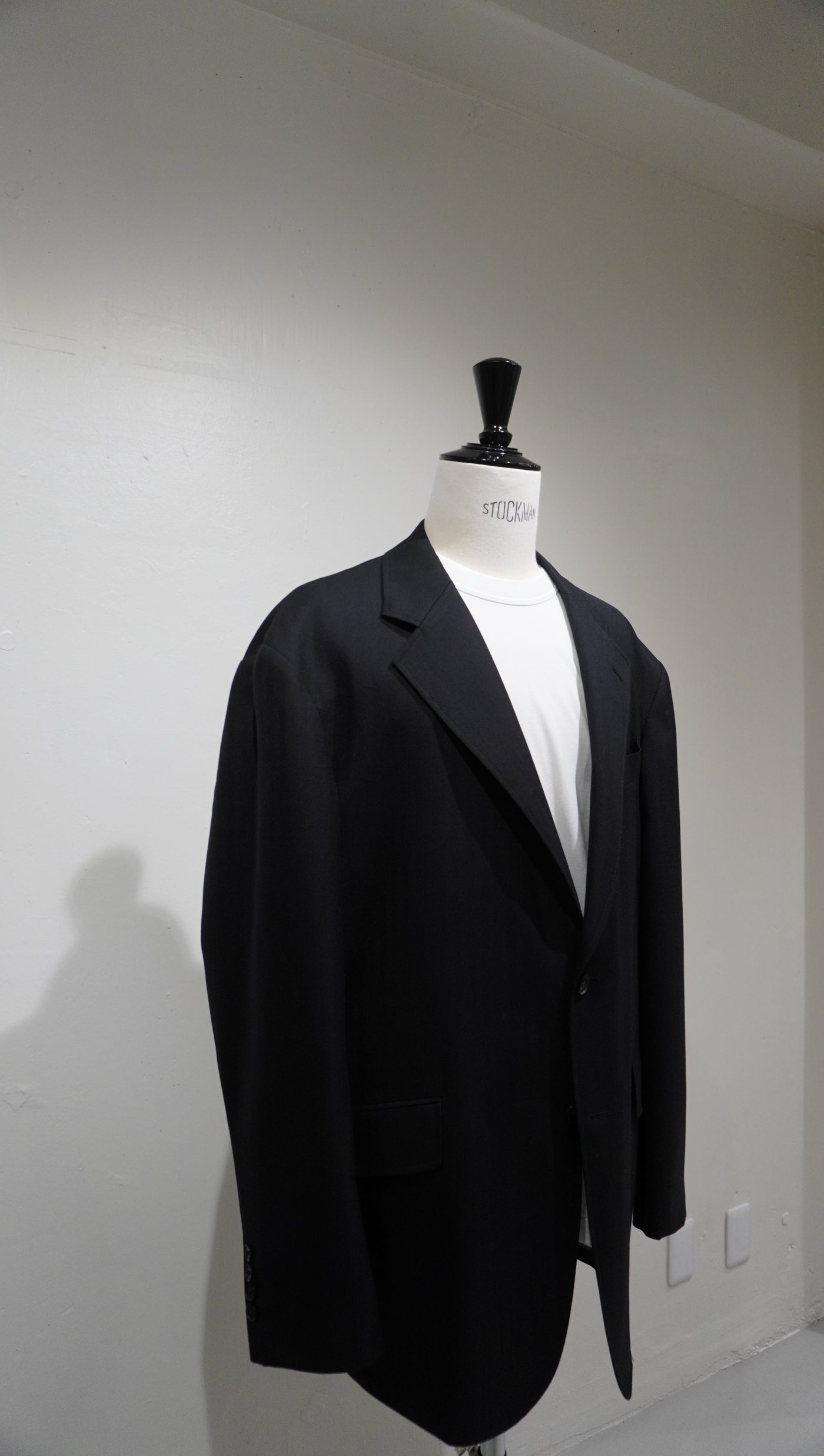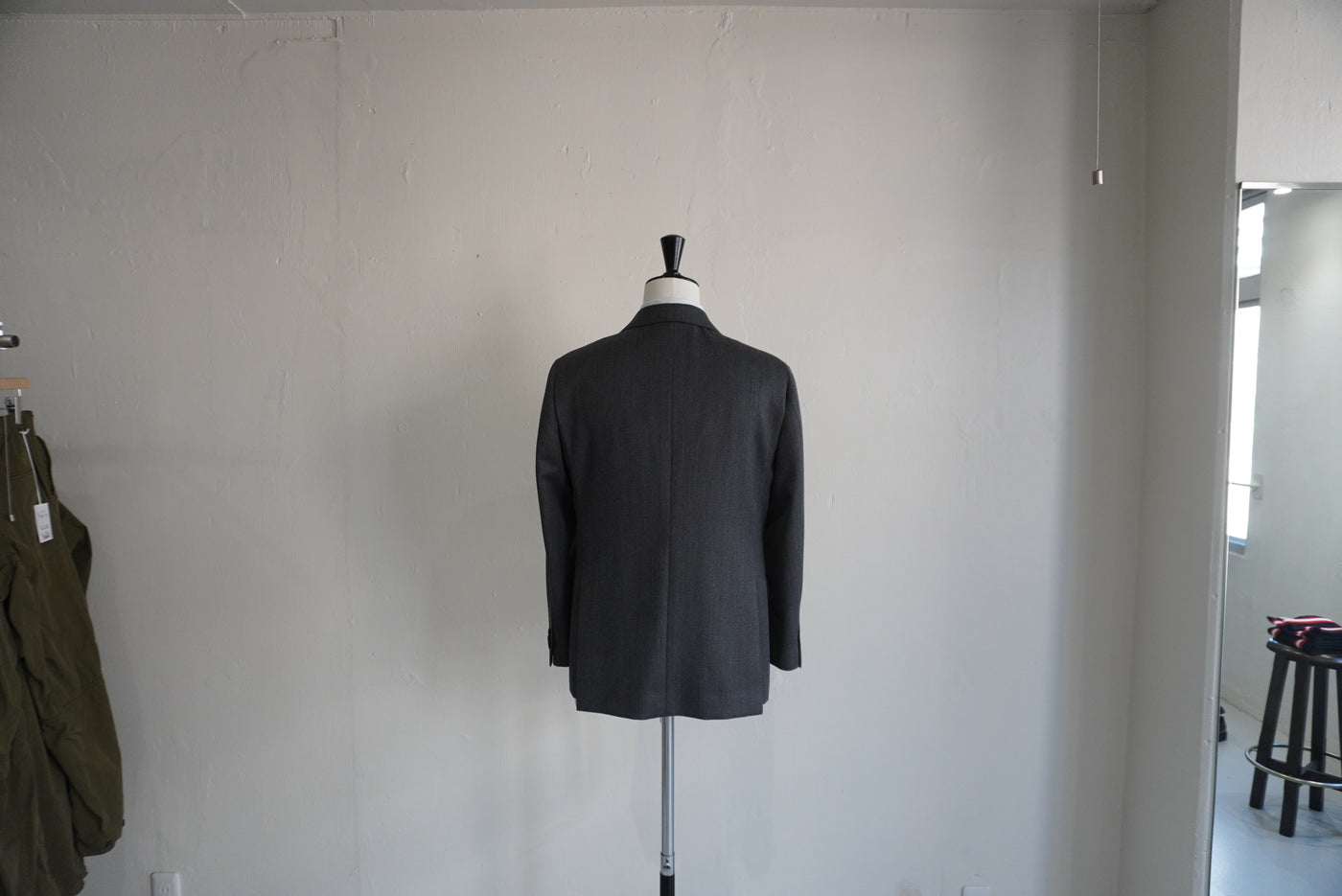 ドロップショルダーが生む抜け感と、英国生地のハリがつくる構築。