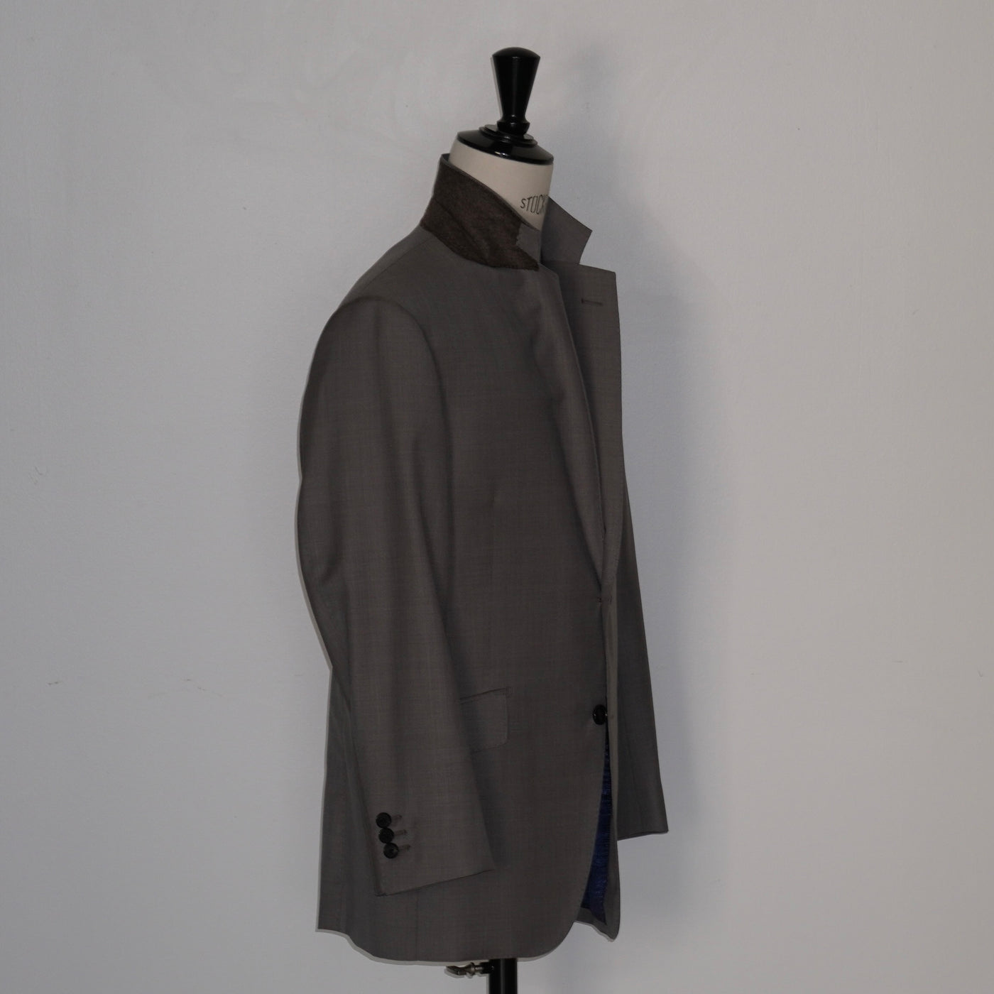 シャークスキンの光沢と相まって、動きの中で表情を変えるグレー。