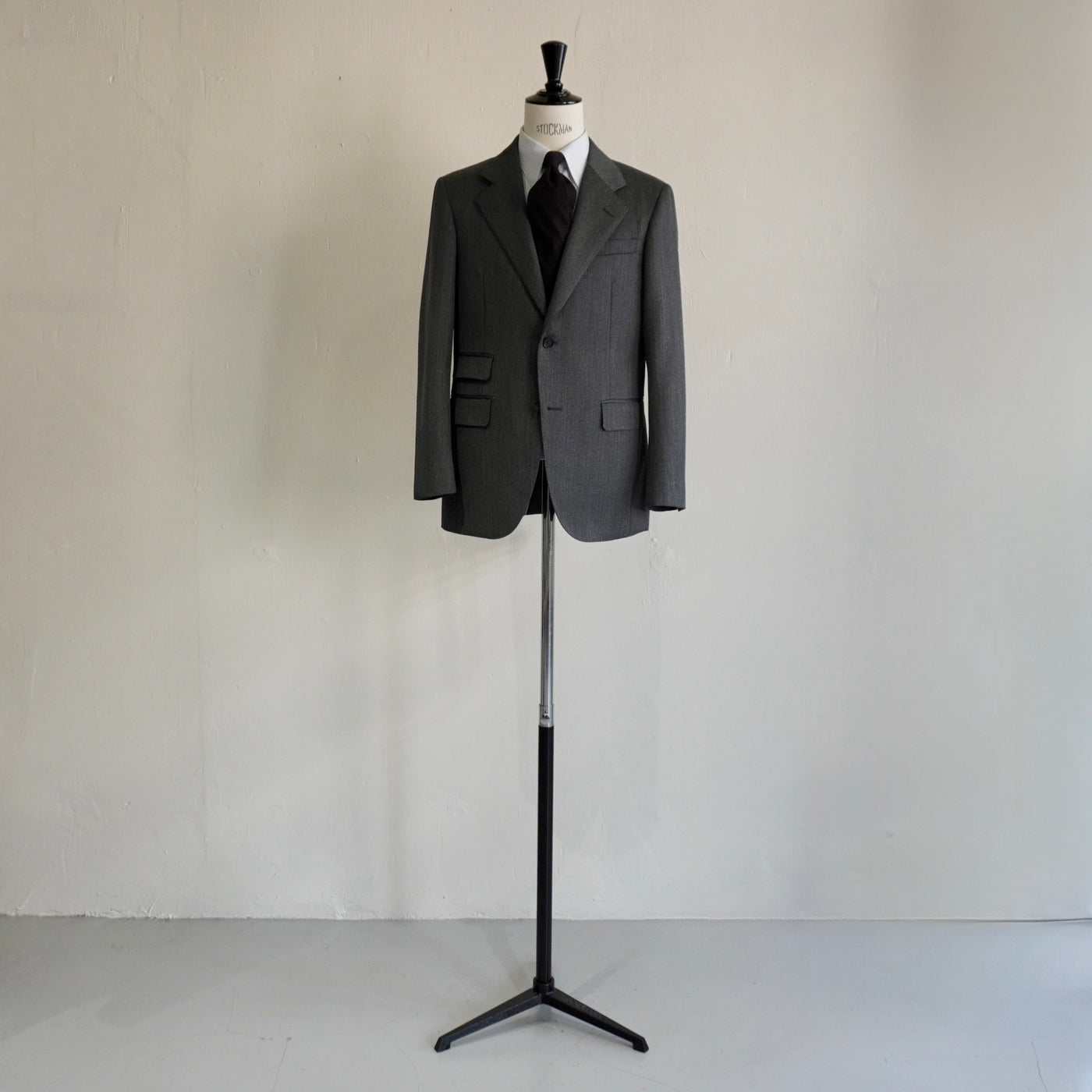 広めのラペル幅が生む、安定した重心。