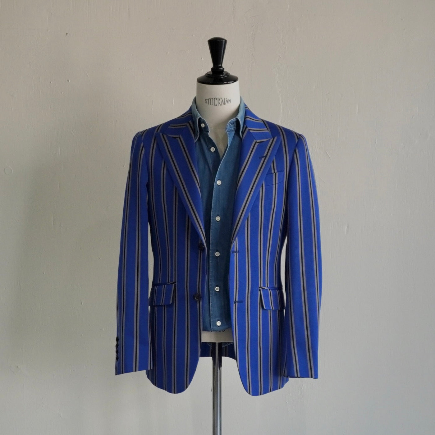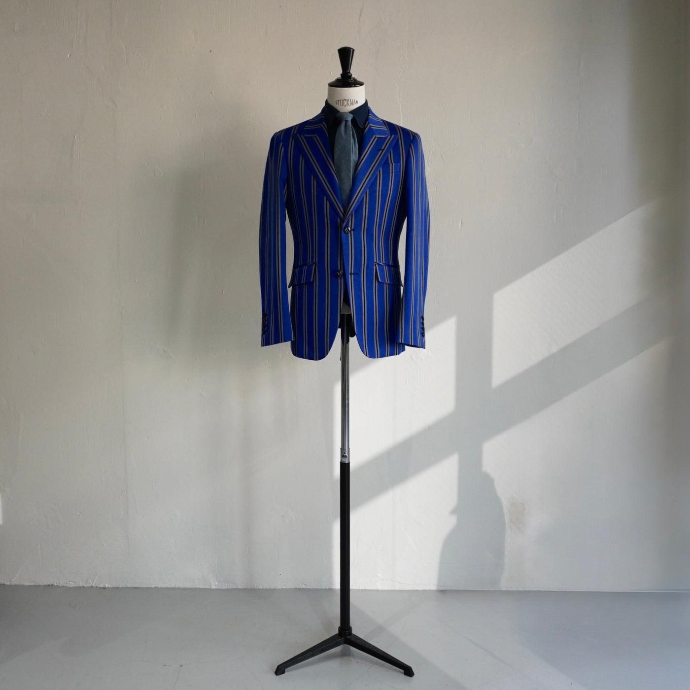 柄の大胆さをラペルが受け止める。