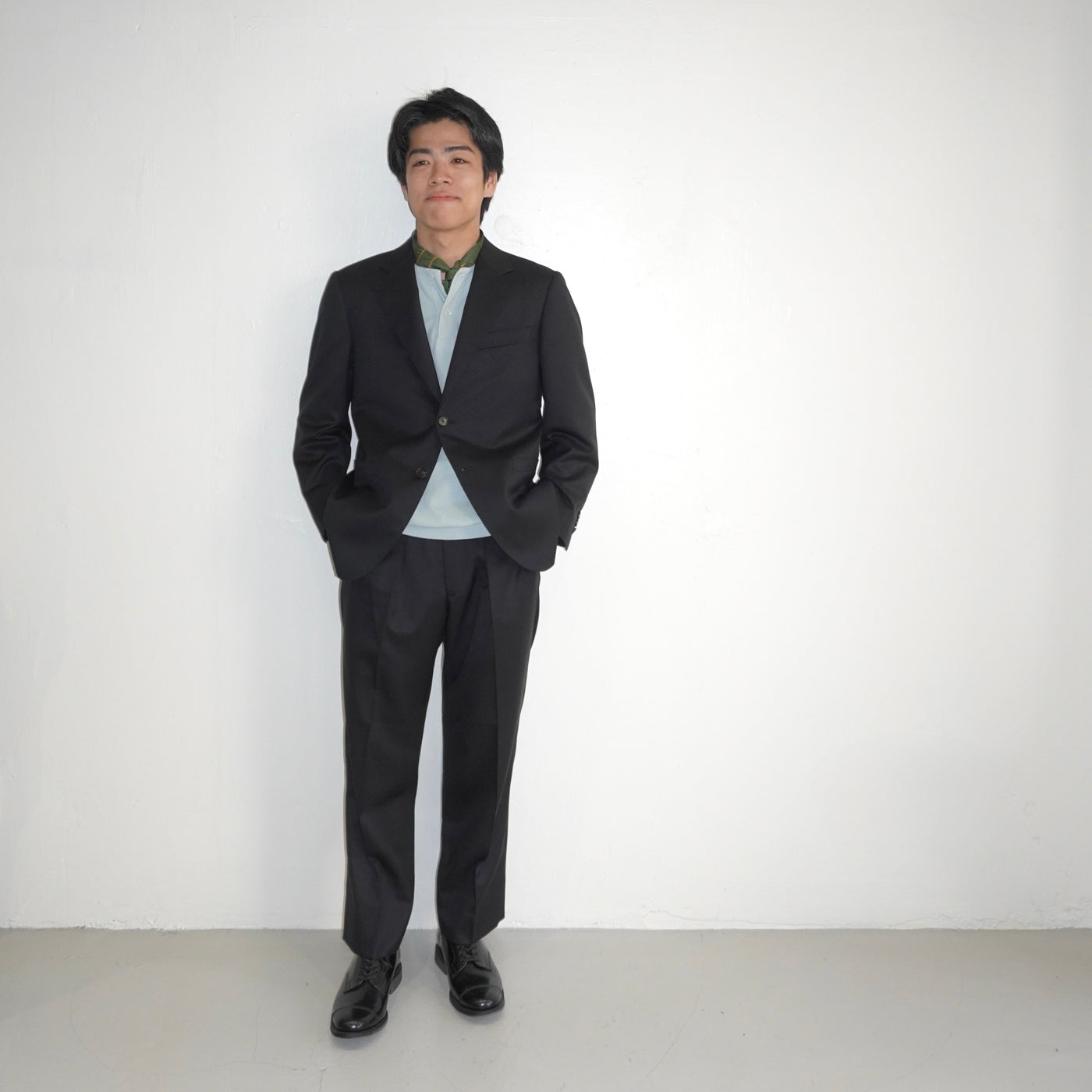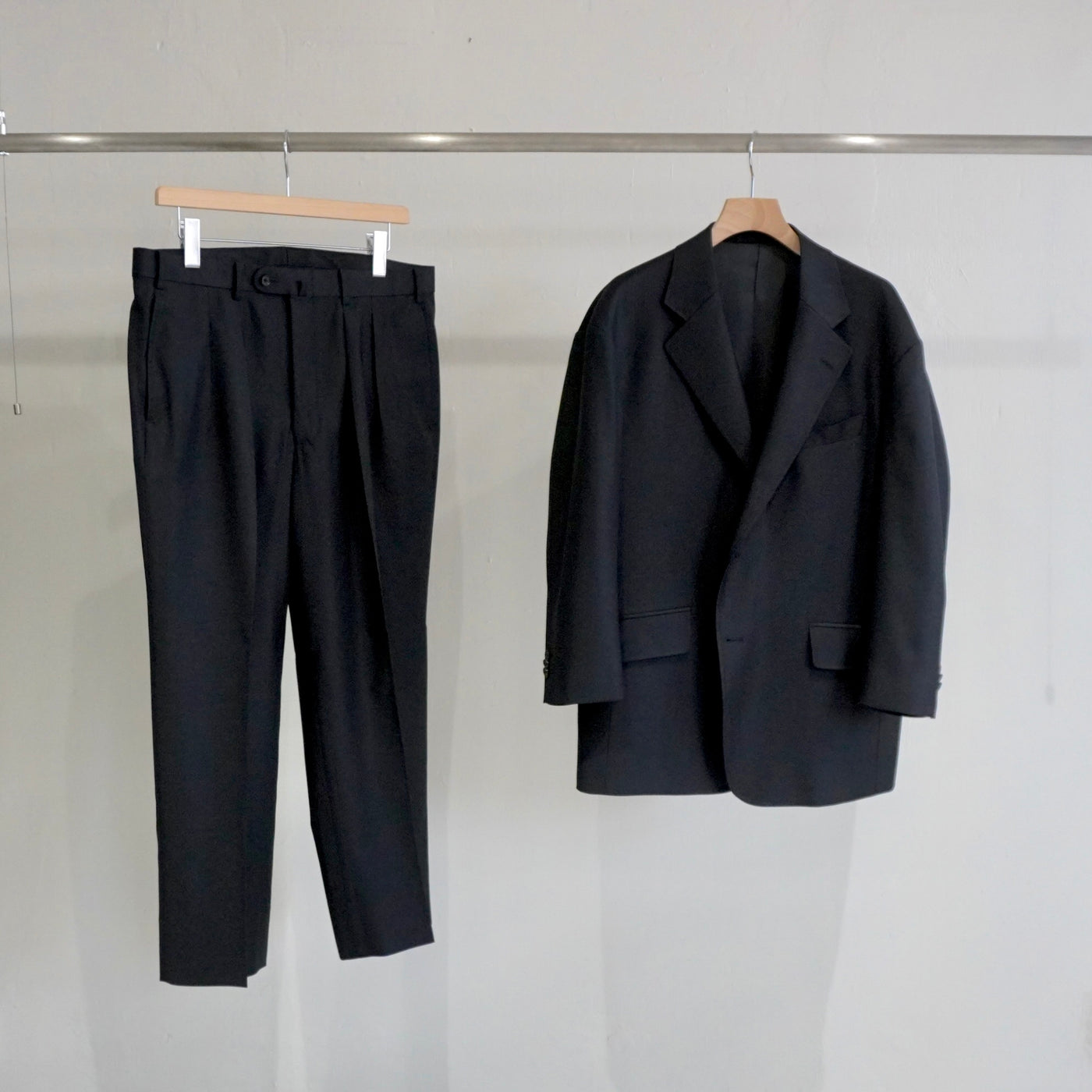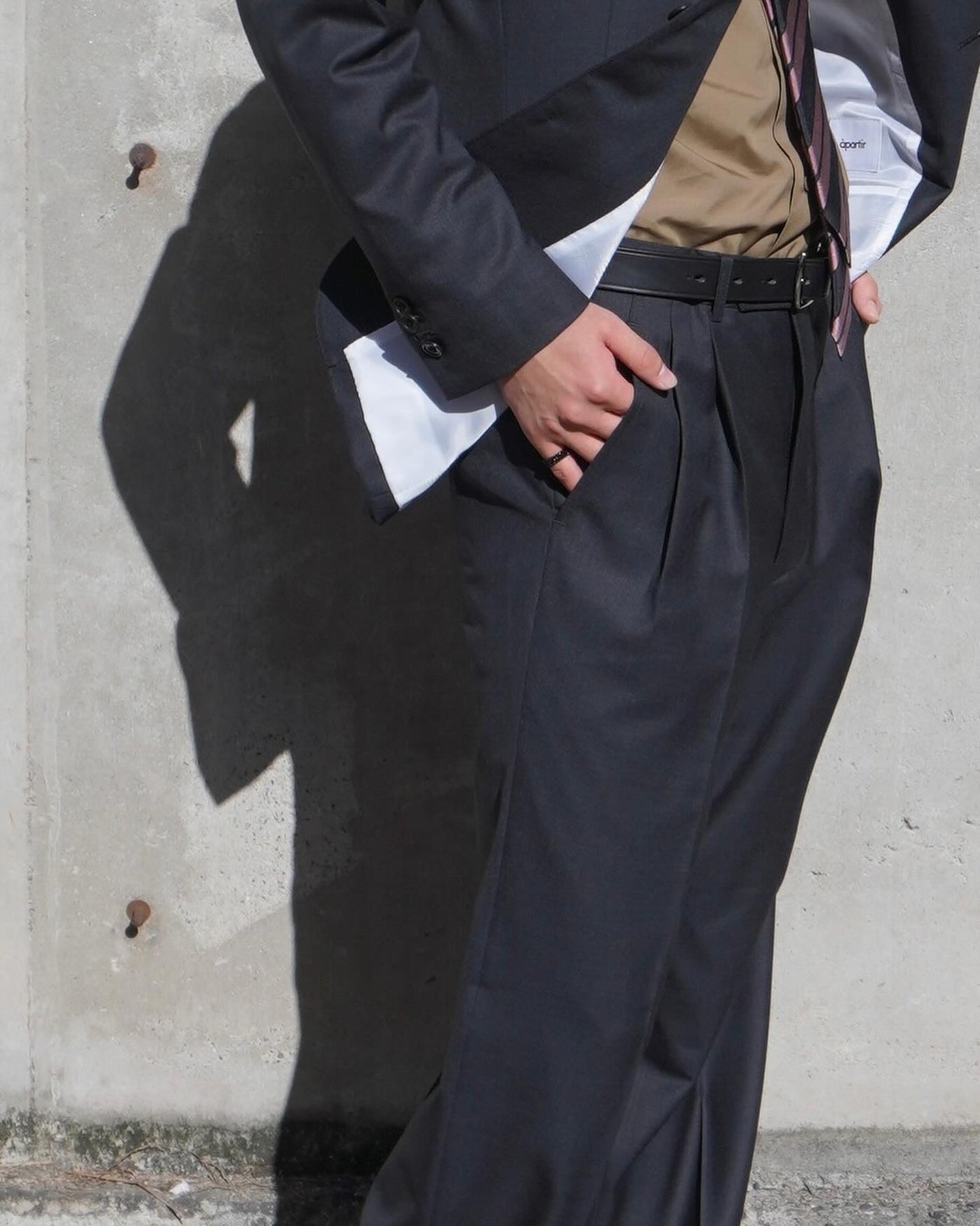 ジャケットとのセットアップでも、単品使いでも映える設計です。