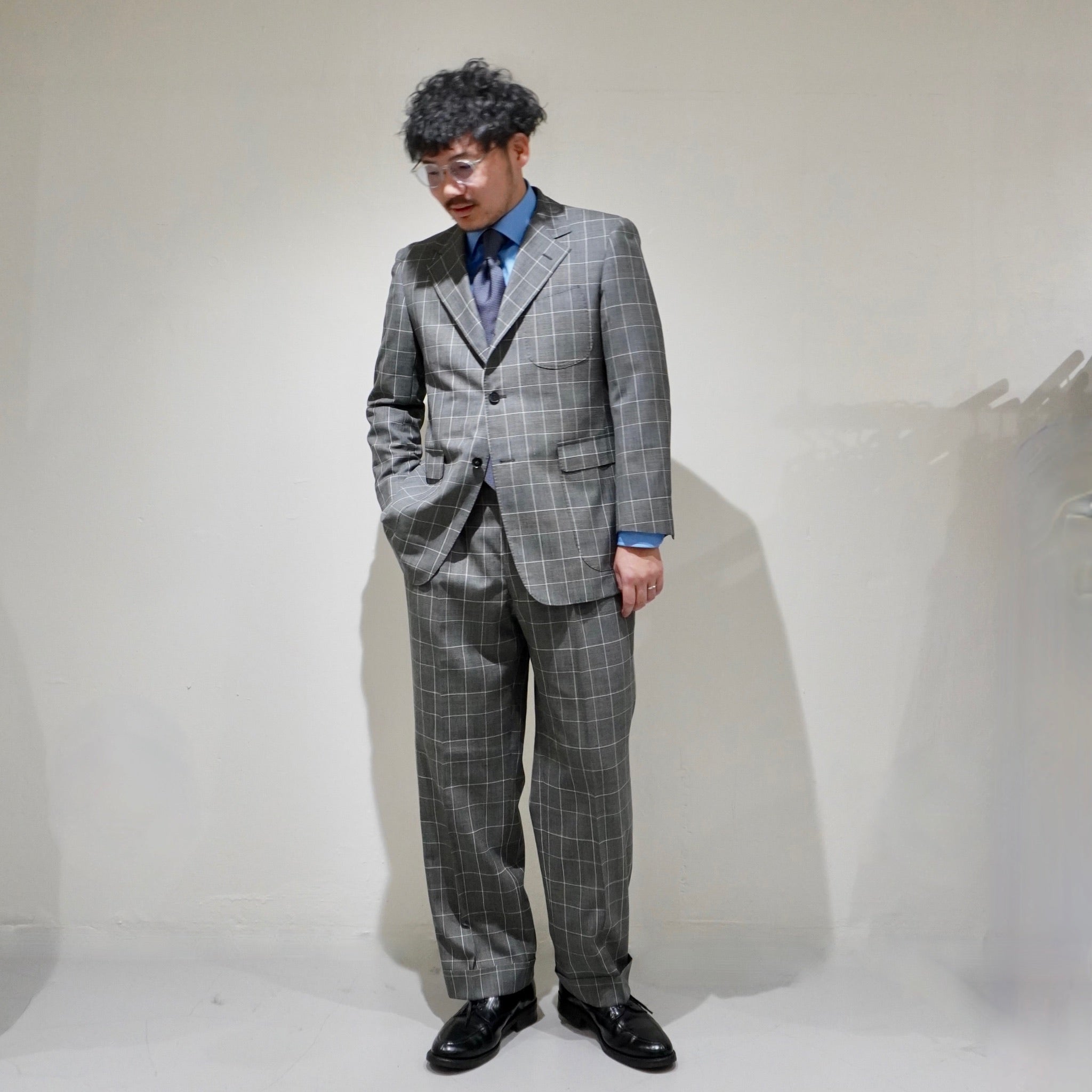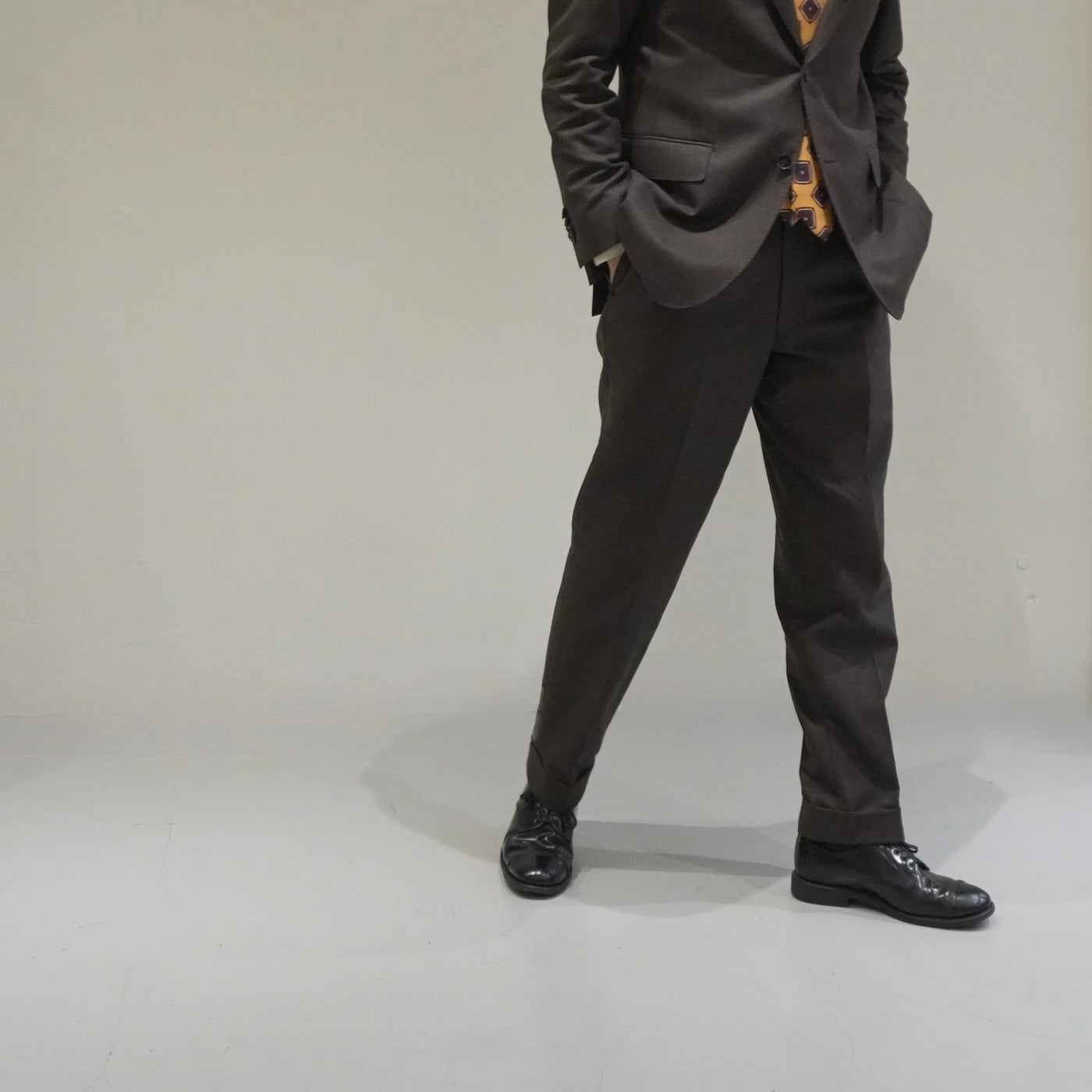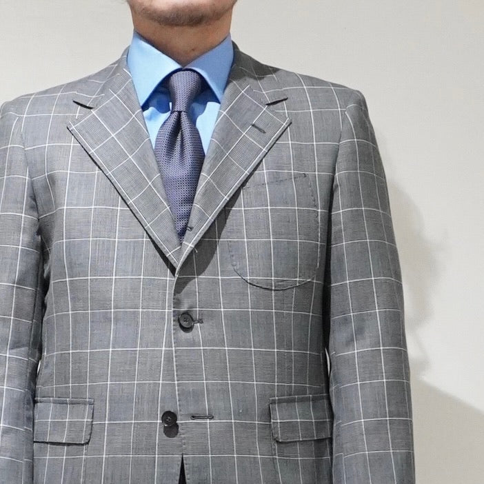 英国らしい重心の低さを意識したラペルバランス。