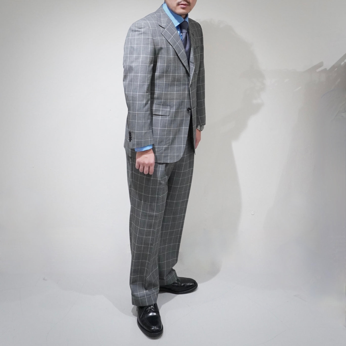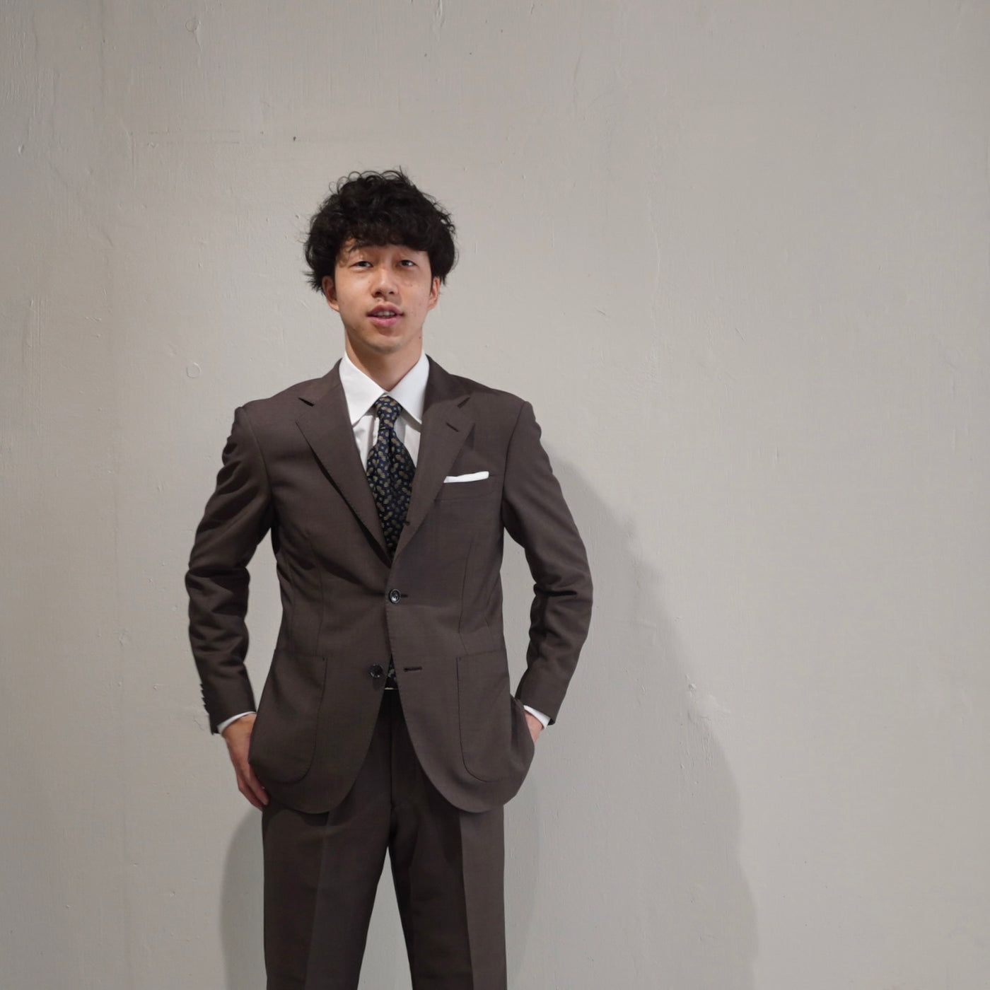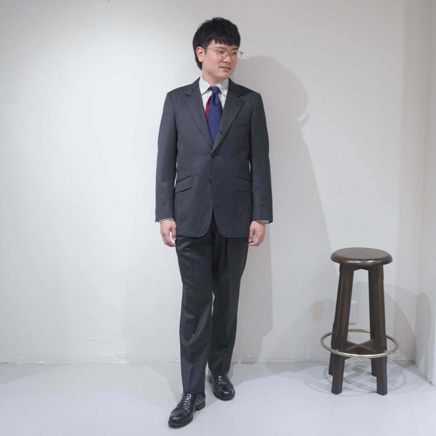 英国らしい重心の低さを意識したラペルバランス。