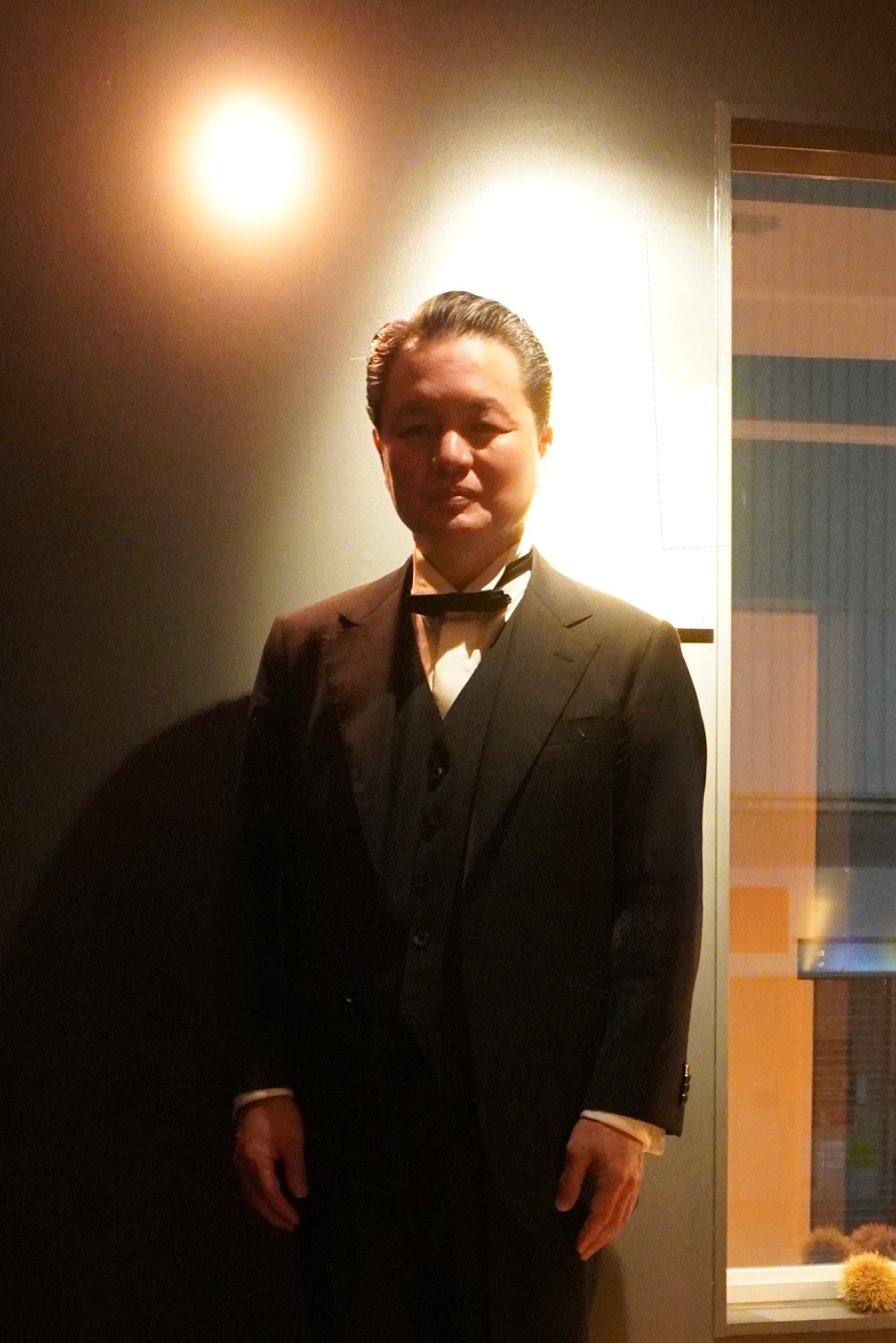 ジャケットを脱いだ瞬間も隙がない。