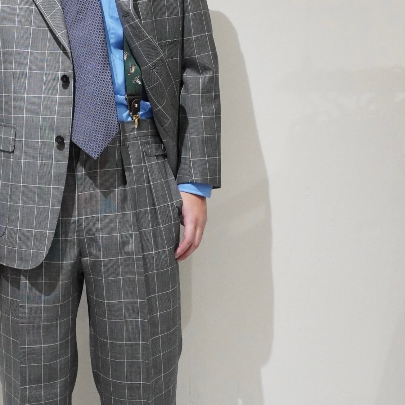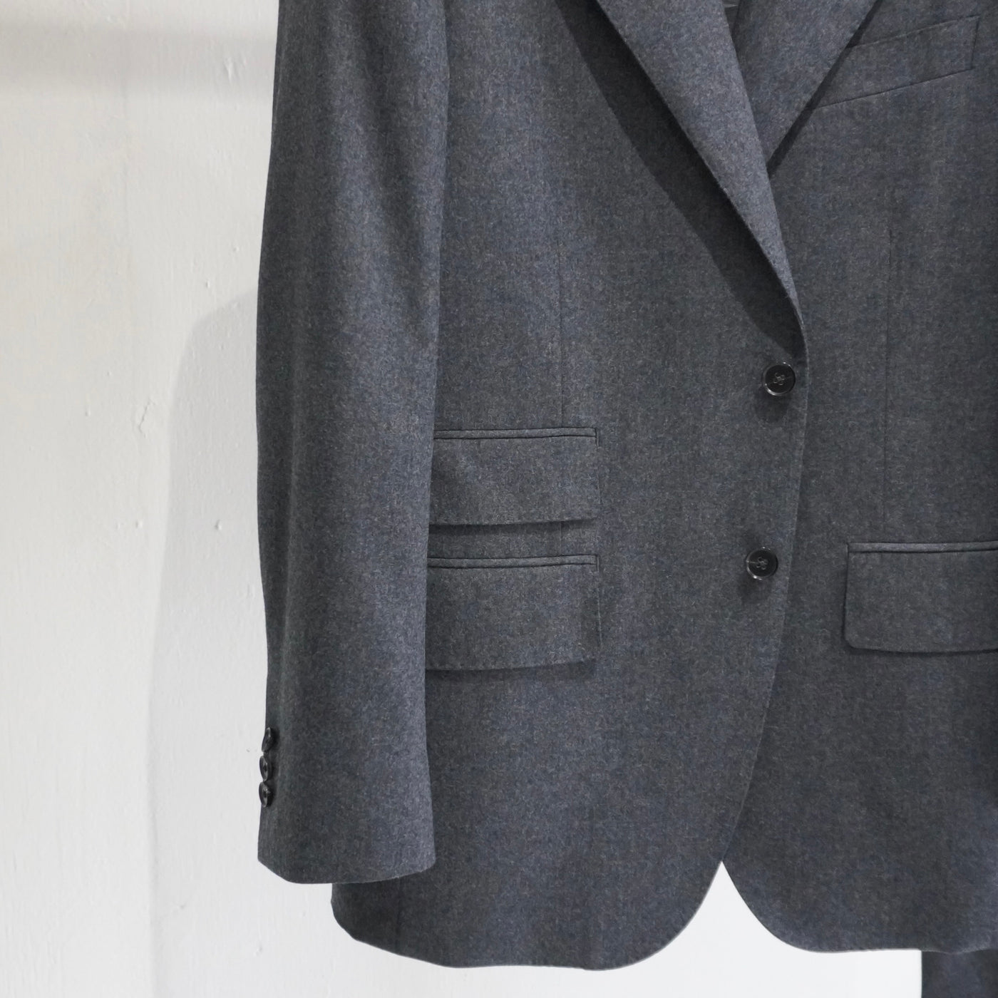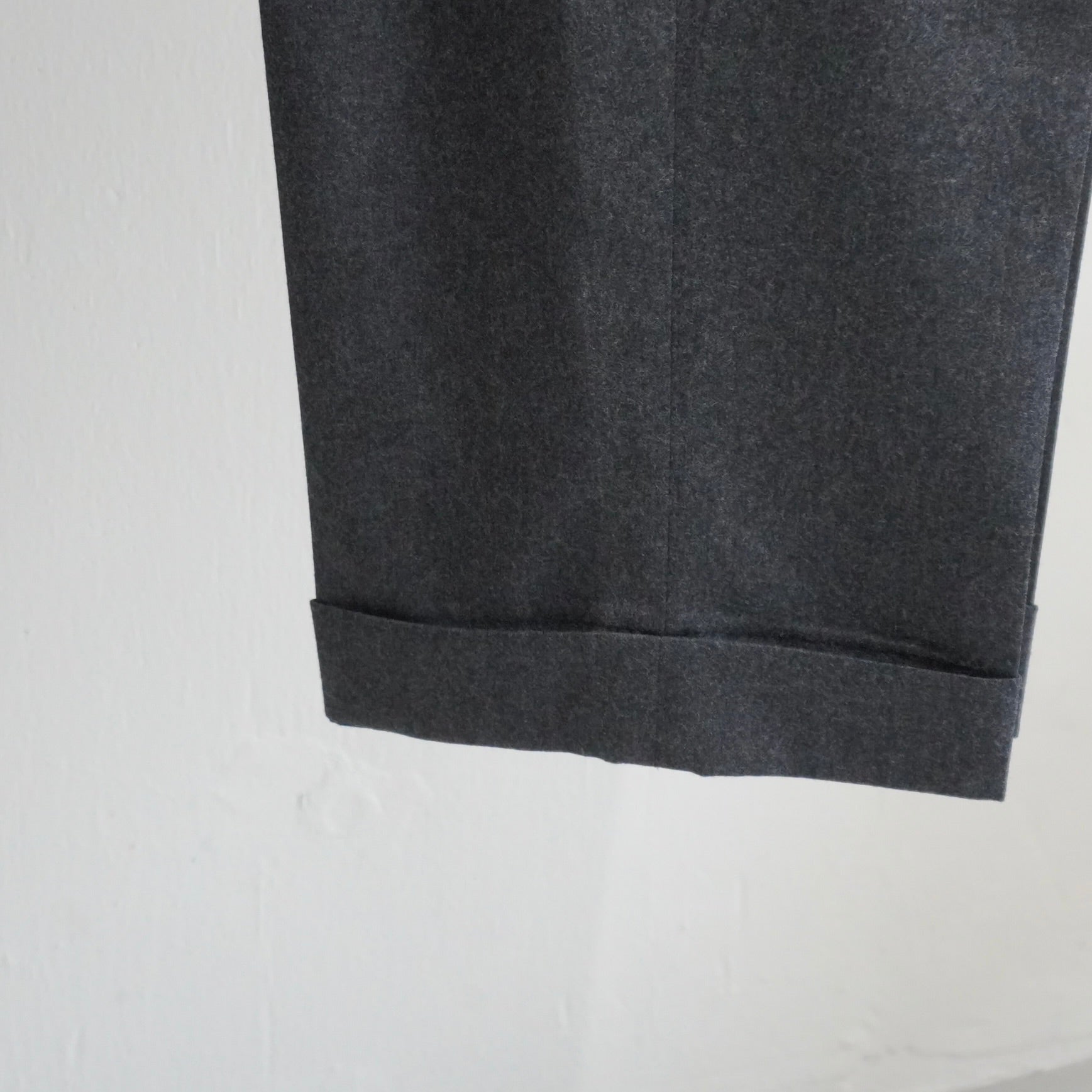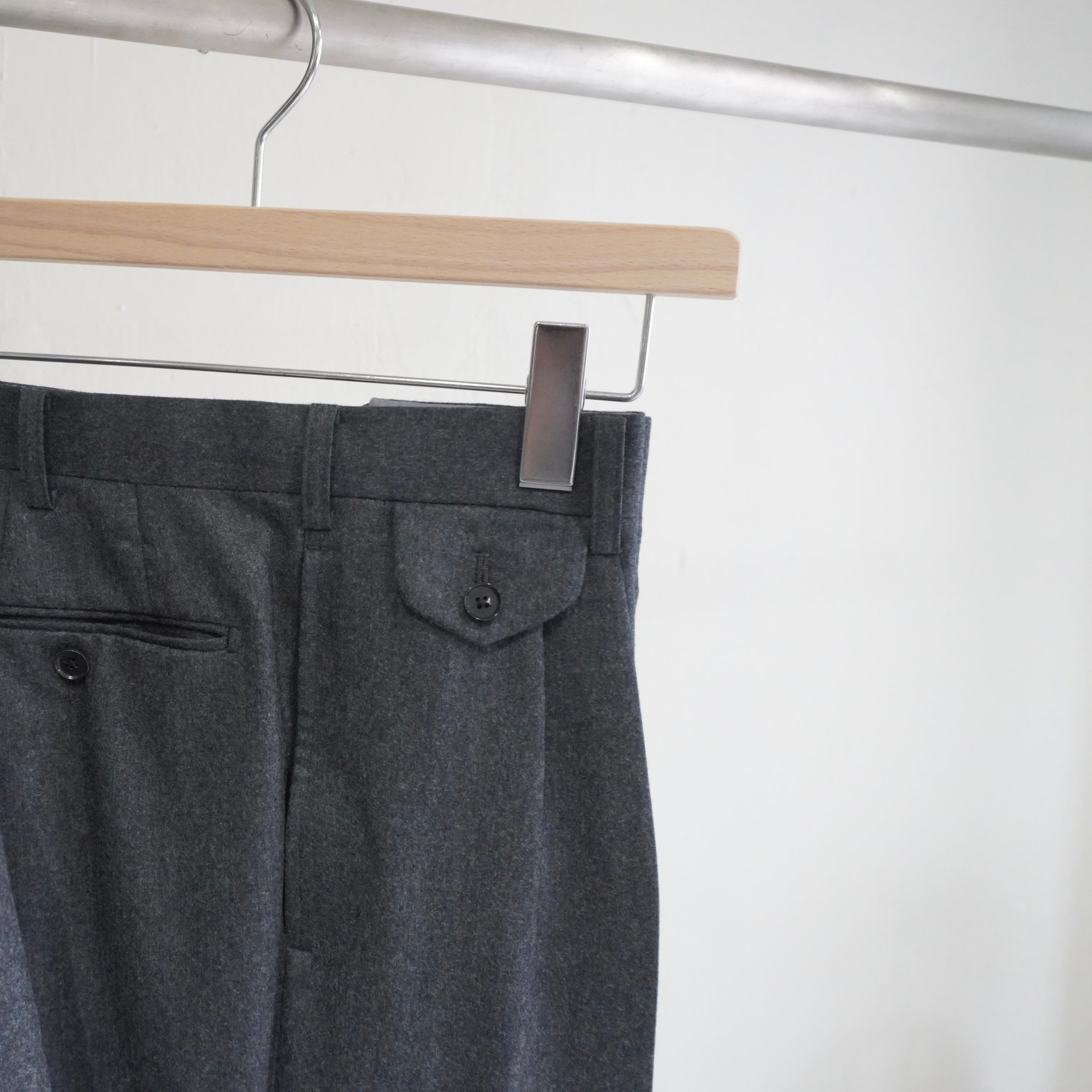 タック入りの立体感がグレーフランネルの柔らかな表情を引き立てます。