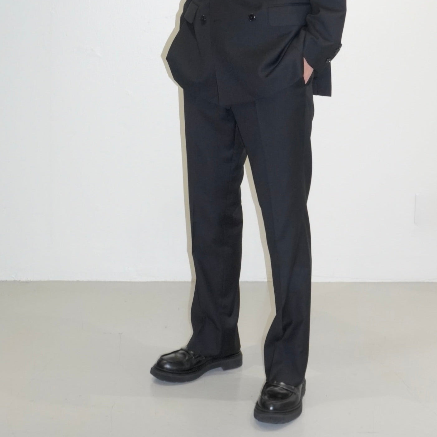 腰回りに程よいゆとりを持たせ、膝下はシャープに。