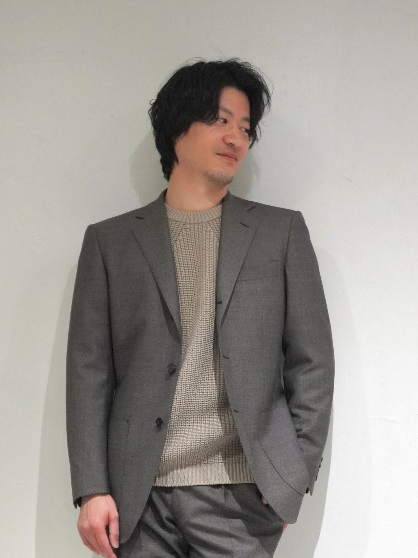 グレーフランネルという王道素材を、今の空気感で再構築する