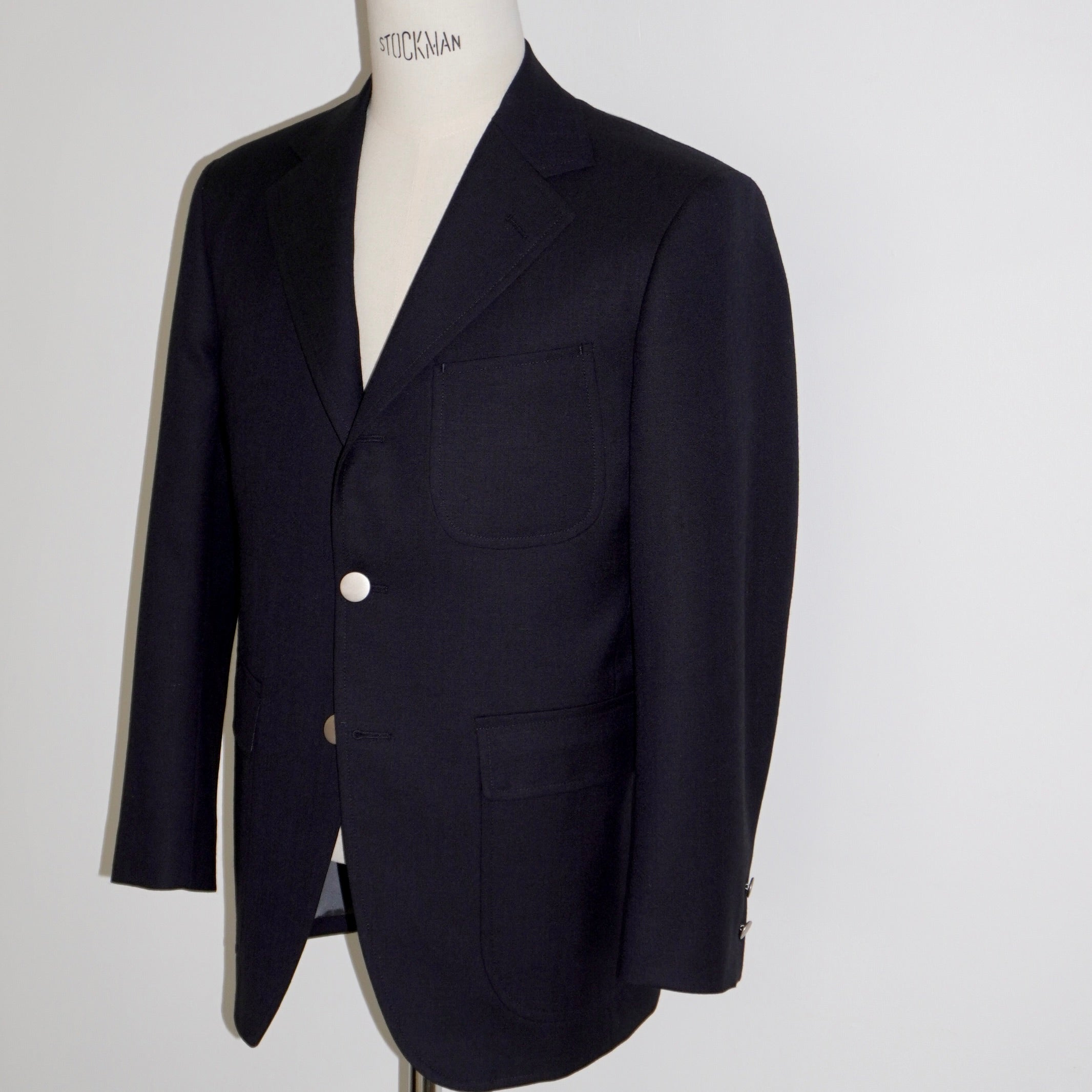• 標準オプション:3パッチポケット(腰フラップ付き)、総毛芯、センターフックベント、ミシンステッチ